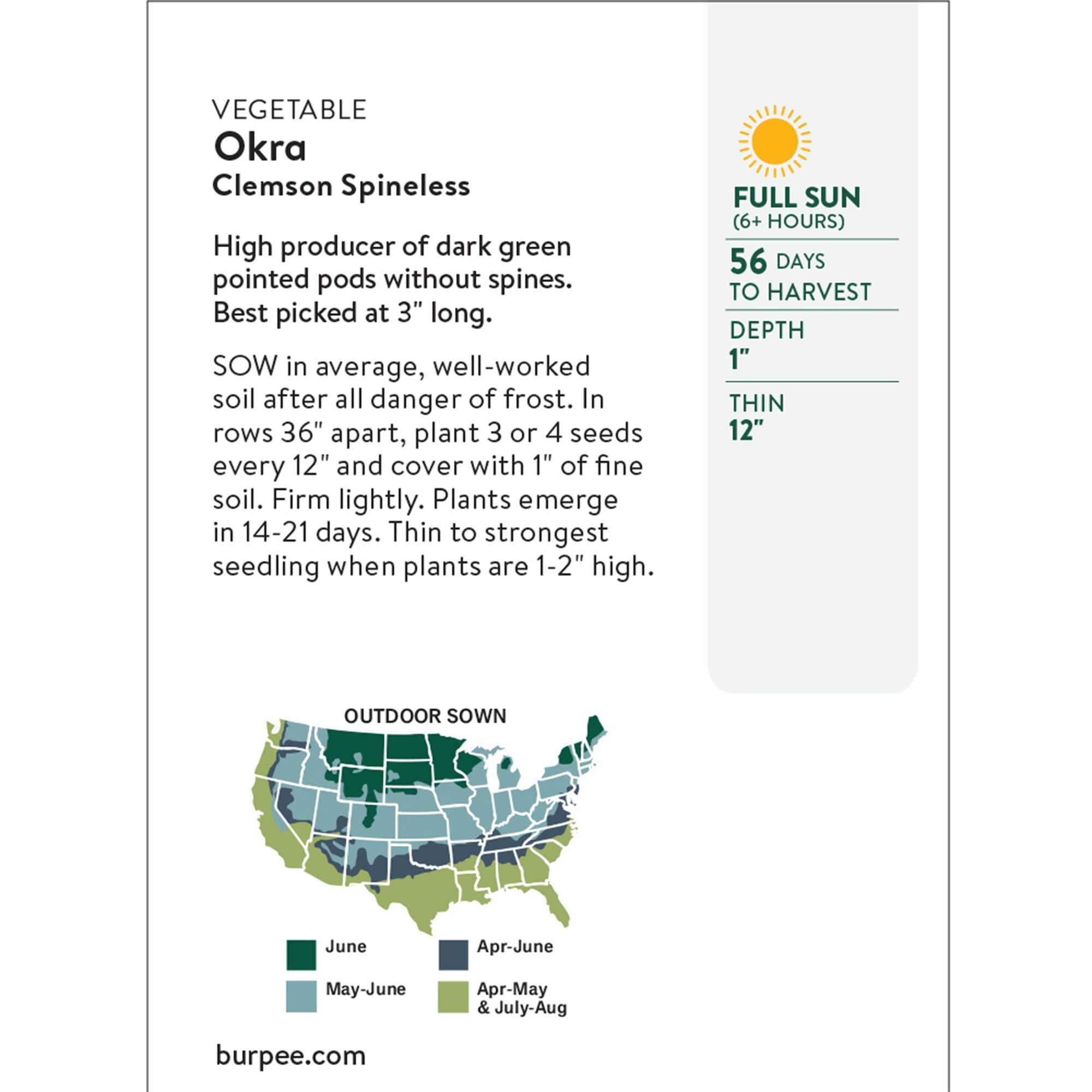 Burpee Organic Clemson Spineless Okra Vegetable Seed 1 Pack Walmart Com