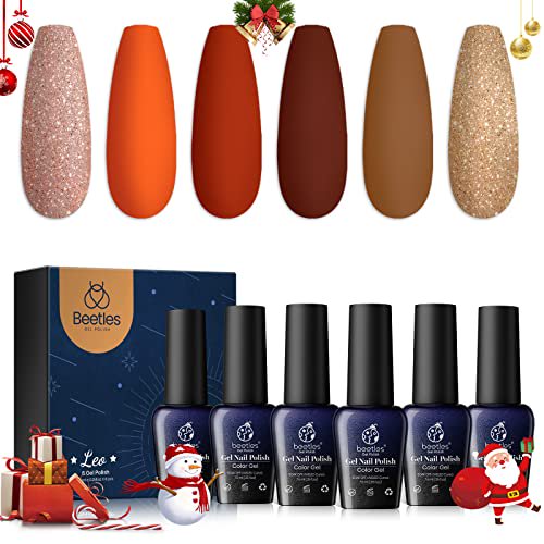 Beetles 20 Pcs Gel Nail Polish Kit Cozy Campfire Collection Fall Winter Orange Yellow Green Gel